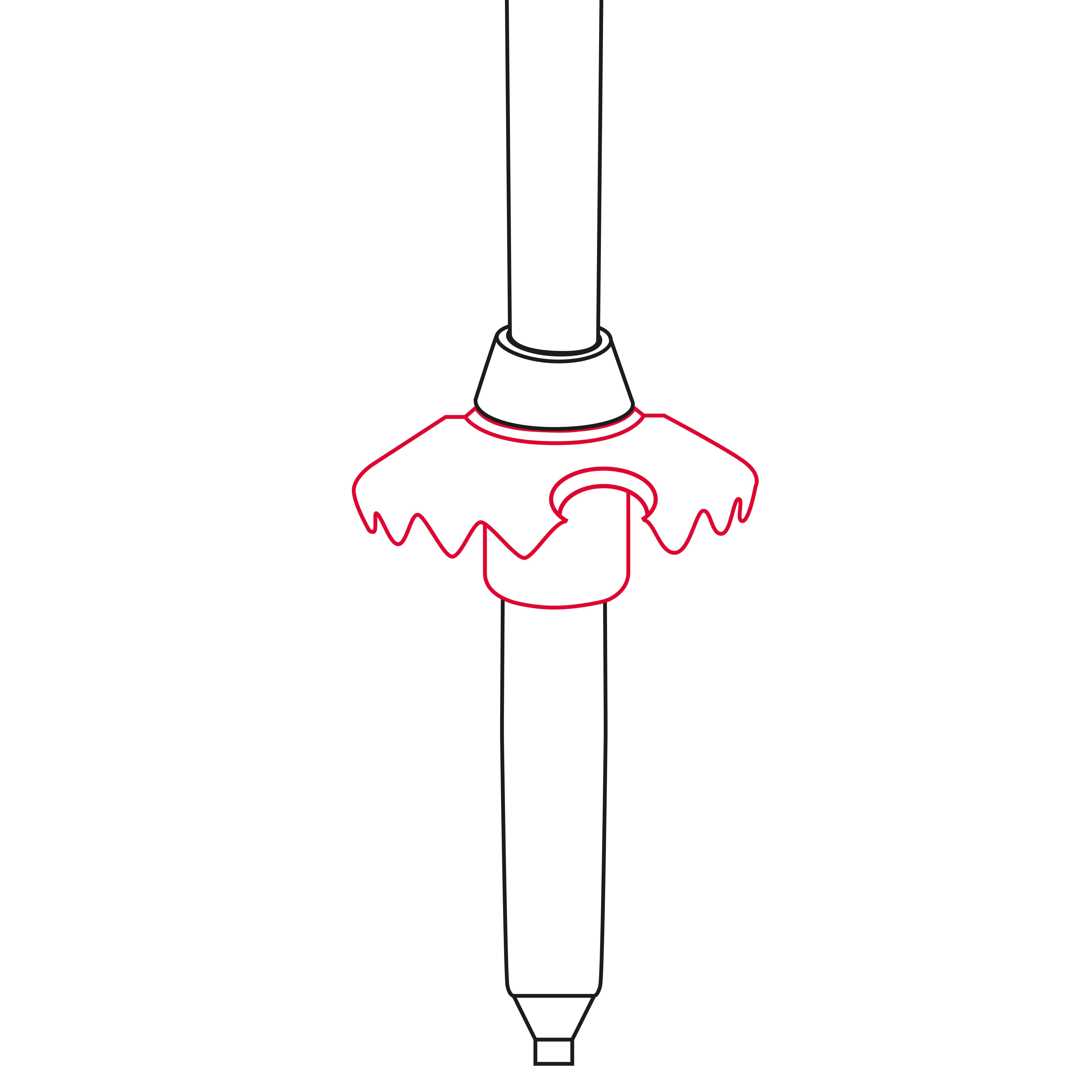 Ocelový hrot integrovaný do rourky pro bodově přesné nasazení hole a optimální stabilitu v téměř každém terénu. Především na ledovém povrchu.