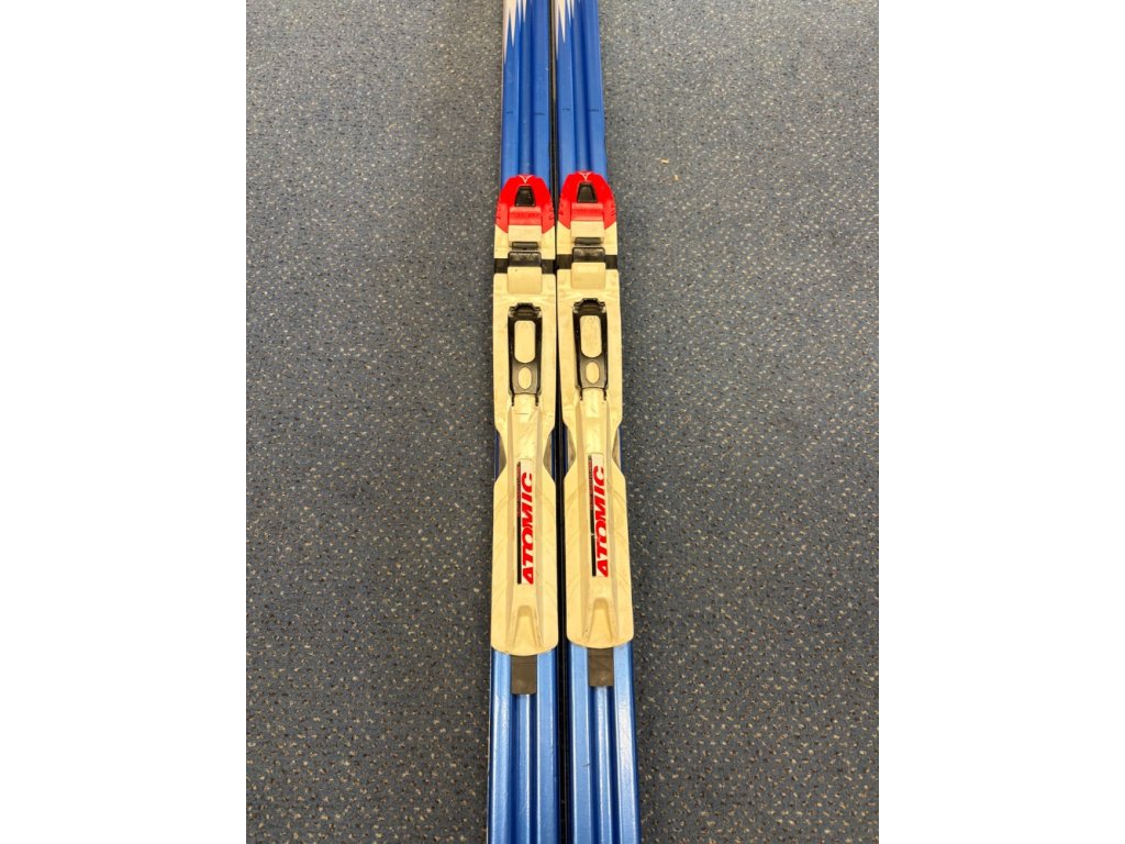 Použité běžecké lyže na klasiku Atomic RC4009 v délce 206cm. Vázání Atomic SNS Pilot (dvě hrazdičky na botě). Skluznice po servisu.