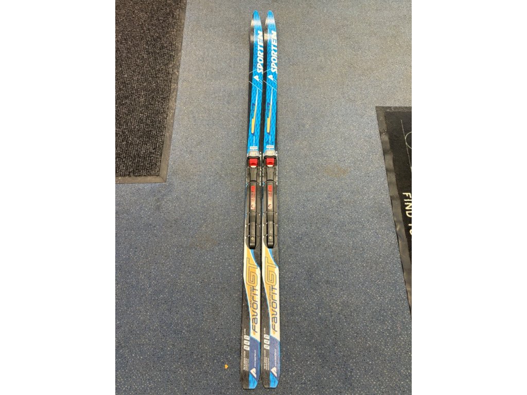 Použité dětské běžky Sporten Favorit v délce 130 cm s protismykem (šupiny) s vázáním Salomon SNS. Skluznice je po servisu.